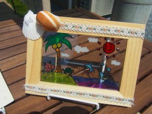今回は受付に私の手づくりのアートを飾ってみました。