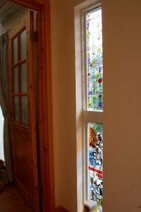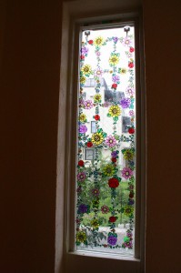 上の段の窓にはお花のステンドグラスアートのデコペンで着彩