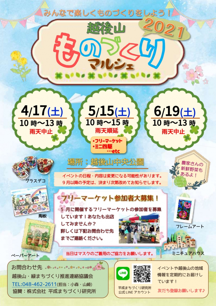 今月は、4月17日(土)にものづくりマルシェを開催します。