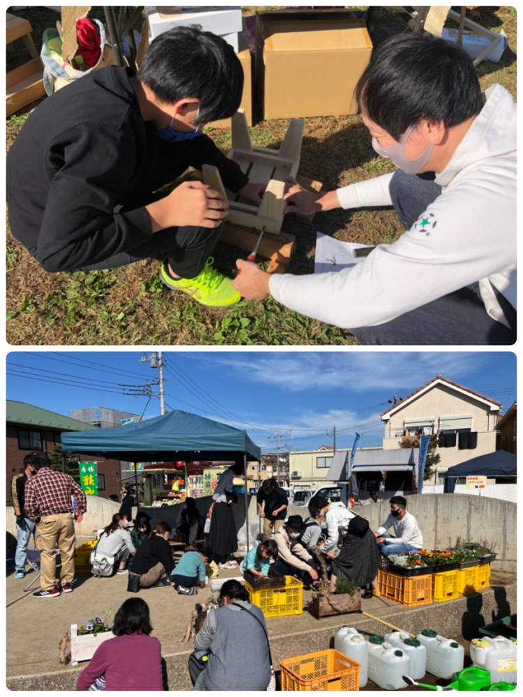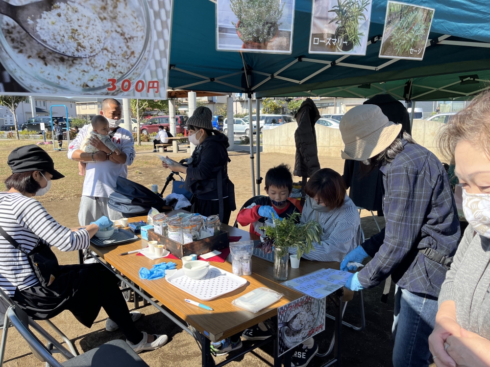 今年は初の試みとして、「ハーブソルトづくり」、「キッチンカー」、「体験型ワークショップ」などの催しがあり、どれも人気で会場が多くのお客様で賑わい、去年から始めた初雁木材さんの「桧のベンチづくり」「プランター寄せ植えづくり」も好評でした!