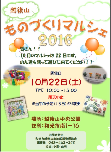 今月は22日(土)に、ものづくりマルシェを開催します。