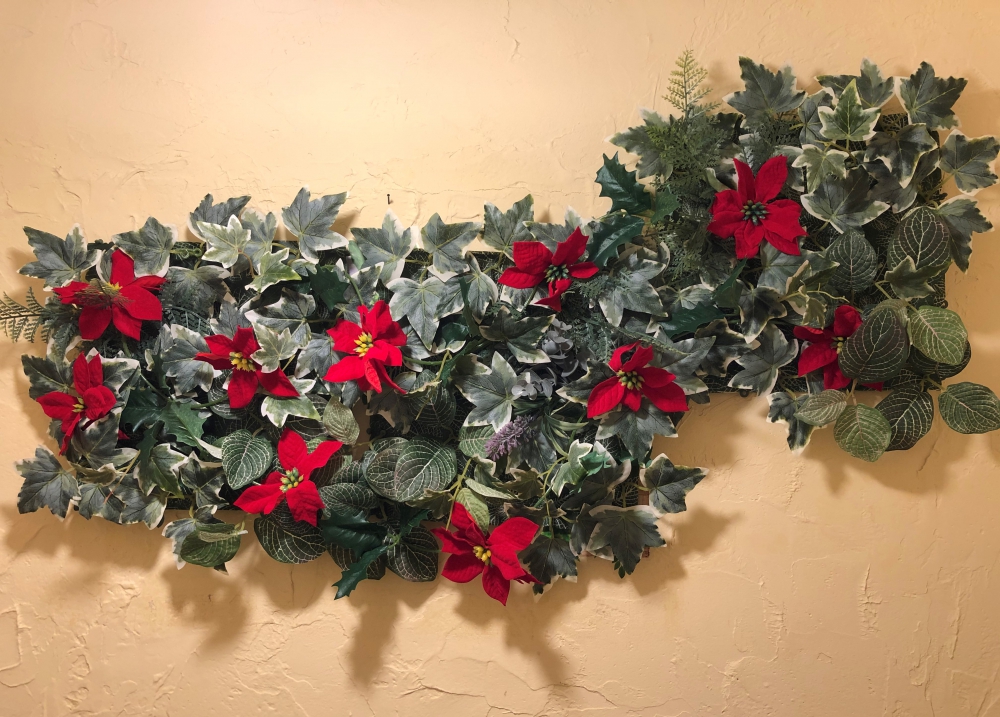 横の壁面はポインセチアになりました。(^^)v