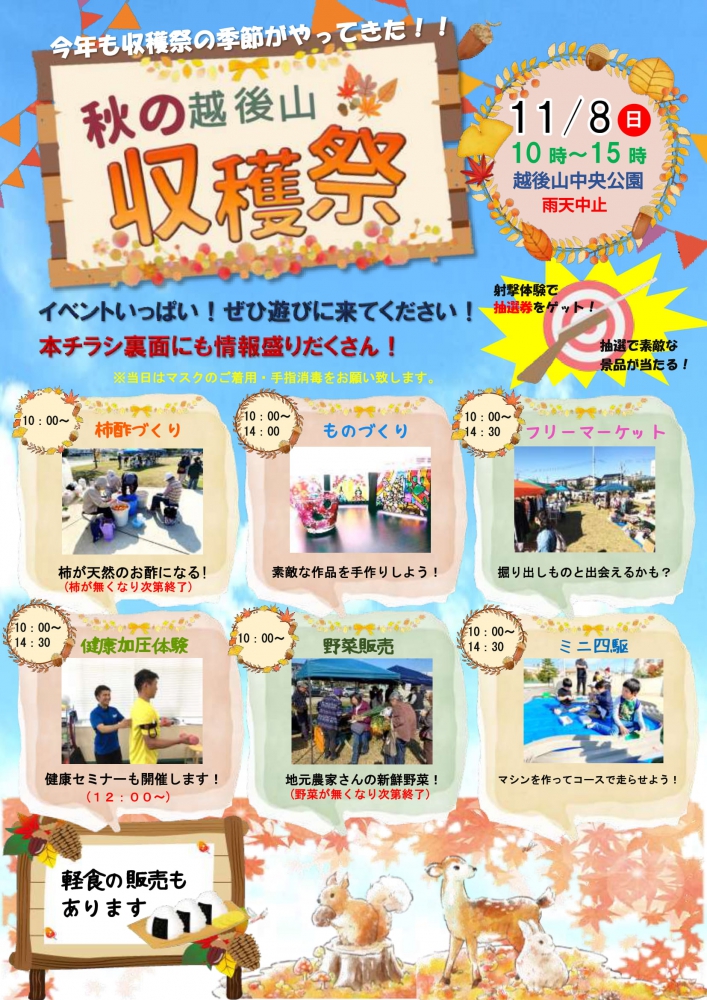 11月8日、越後山中央公園にて、秋の収穫祭を開催します!