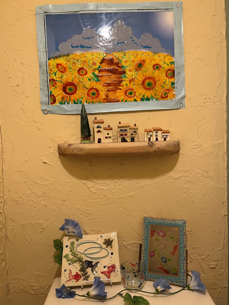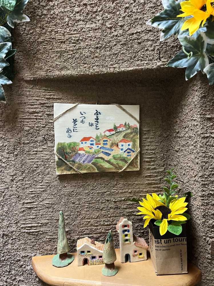 陶板を壁に飾りたくて苦肉の策です。(笑)