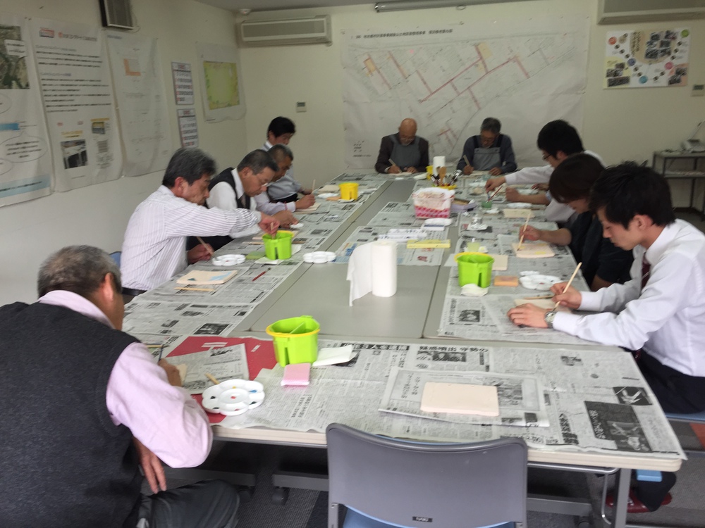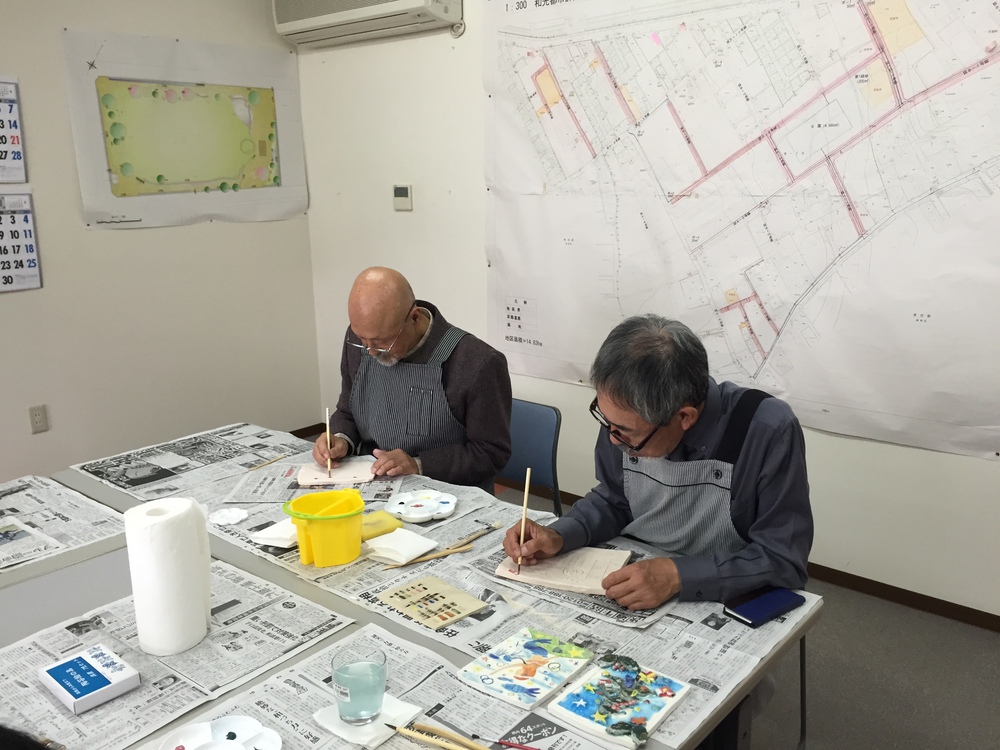 今回は、2月に下絵を描いた陶板に色づけをする作業です。
