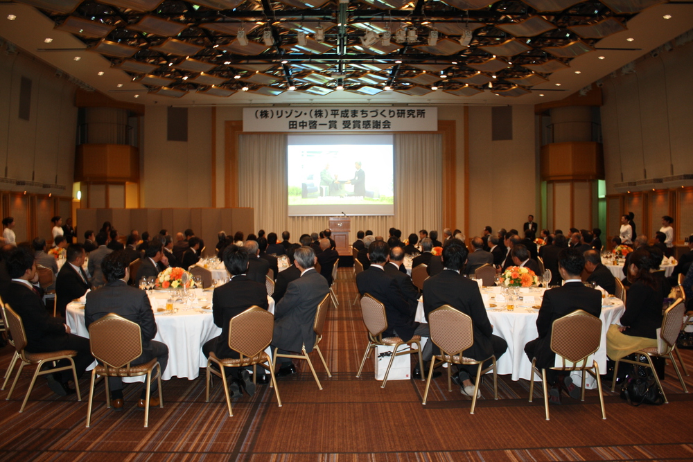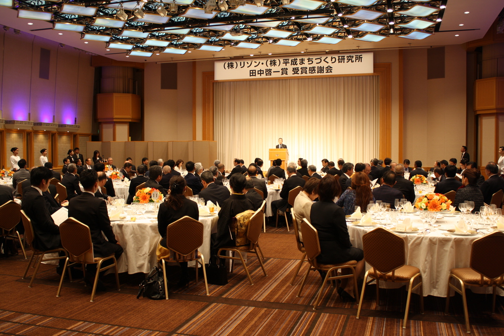 6月に受賞いたしました、田中啓一賞の受賞感謝会を11月2日に帝国ホテルにて開催いたしました。この会には90名近いお客様をお招きし、日頃の感謝と共に、和光市越後山の街づくりの紹介や、取り組みをお伝えいたしました。