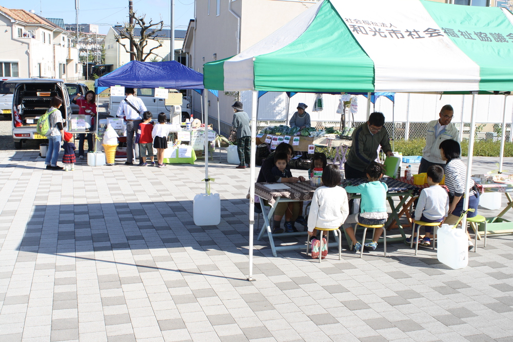 5日に和光市越後山にて秋の収穫祭を行いました。ものづくりや、フリマ、ミニ四駆などの催し物のほか、駅前商店ひまわりさんと地元農家さんにもご参加いただきました。