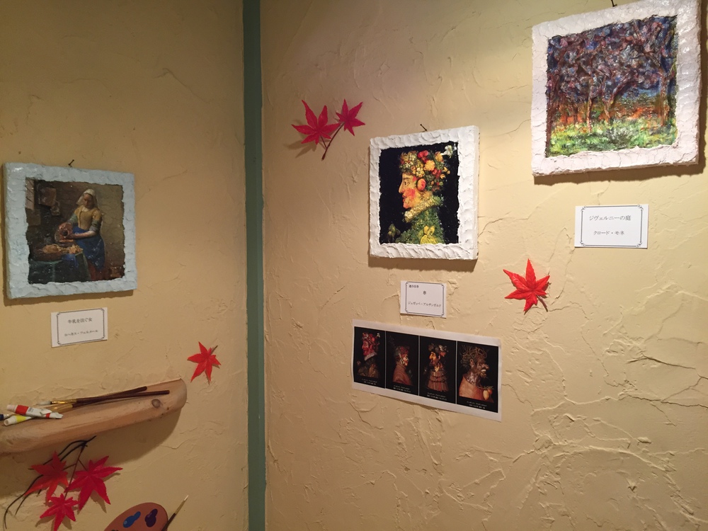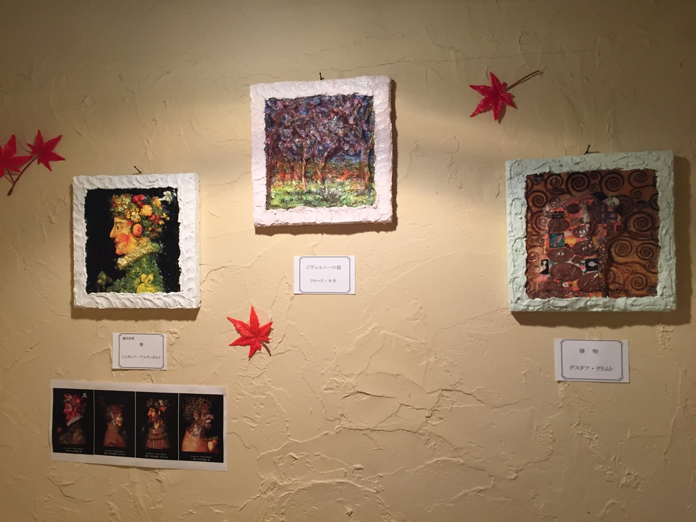 さて、我が社のトイレディスプレイですが、一足先に秋バージョンに更新しました。絵画のペーパーナプキンを選ぶ人はほとんどいないのですが、この時期にぴったりだと思い、制作してみました。