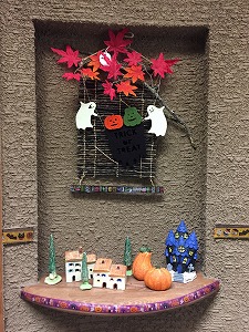 ディスプレイをハロウィンバージョンに替えました。ちょっと出遅れの感じはしますがあと数日間、これはこれで楽しみたいと思います。