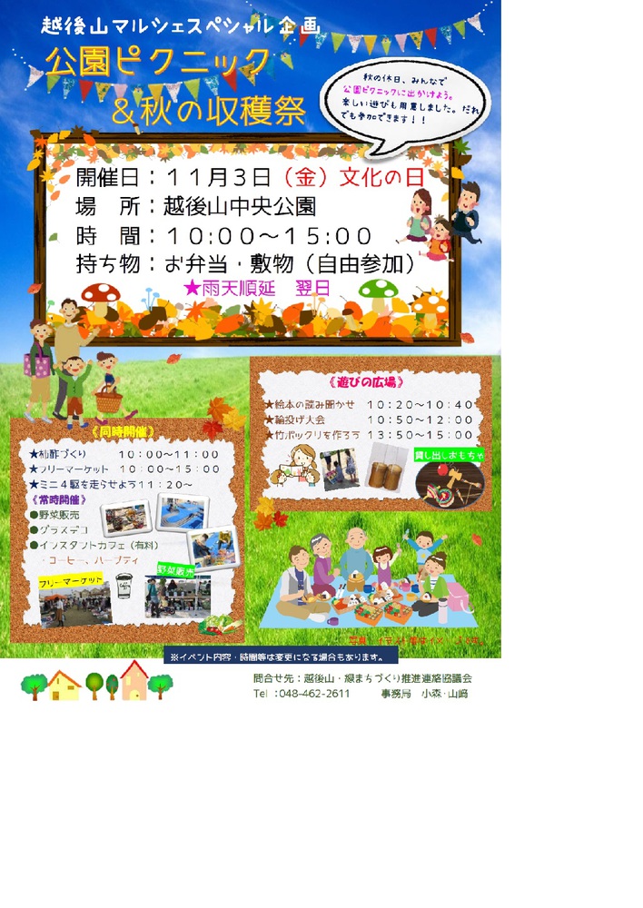越後山中央公園でピクニックと秋の収穫祭を同時開催します。