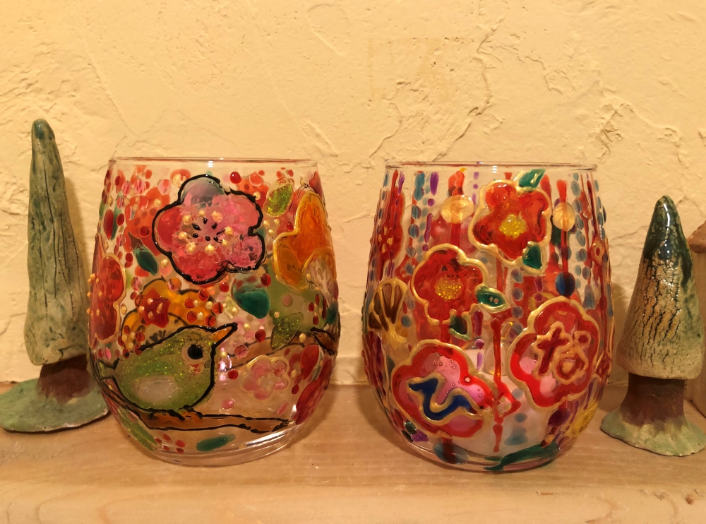 ちょっと大き目なグラスデコに鶯を描きました。