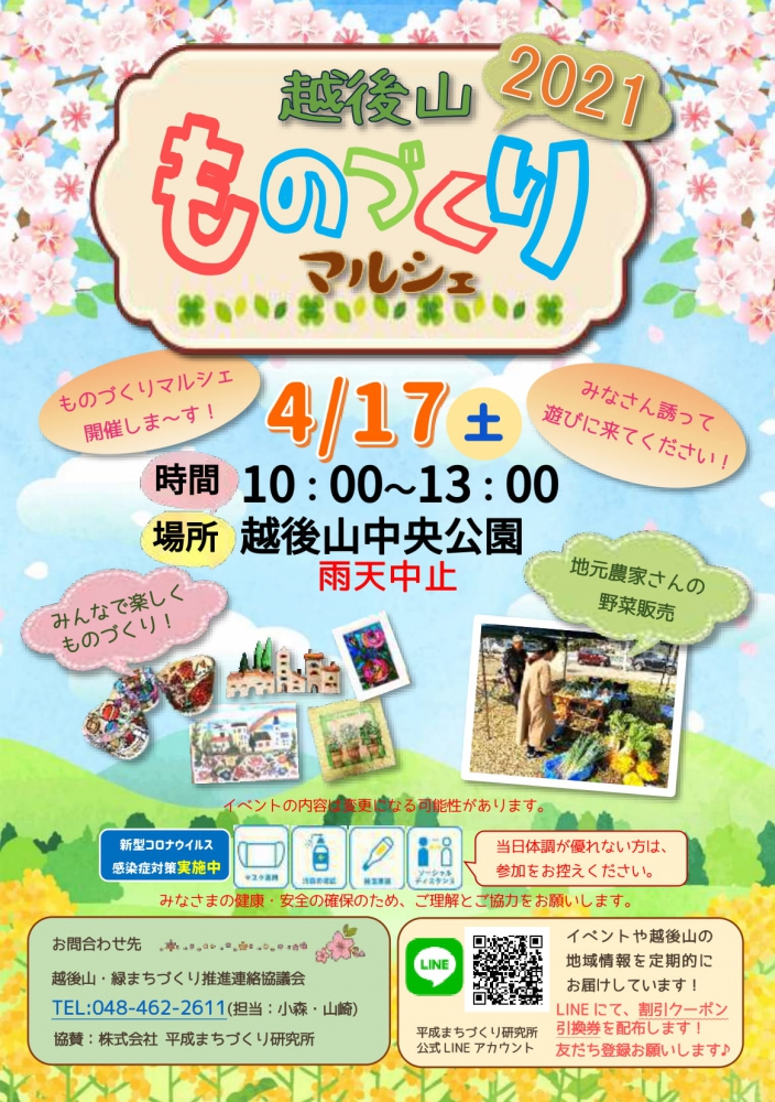 4月17日(土)に越後山中央公園にて、ものづくりマルシェを開催しました。