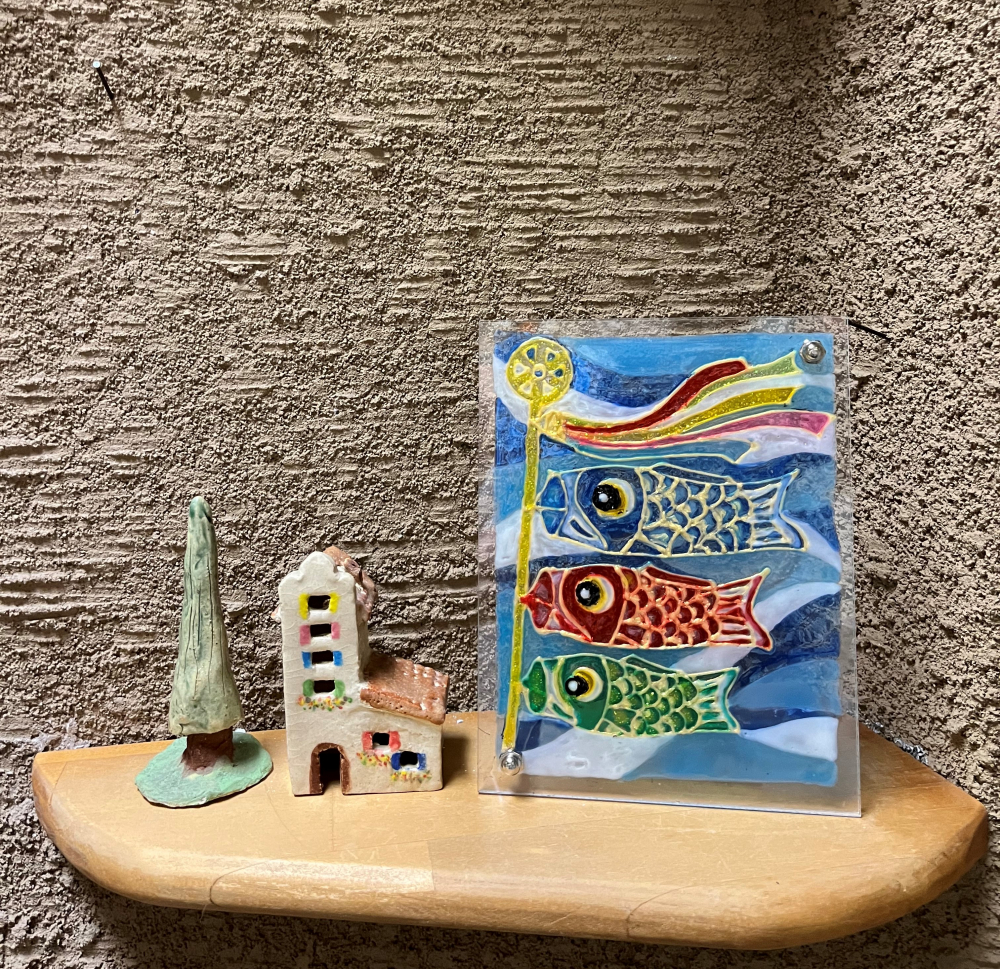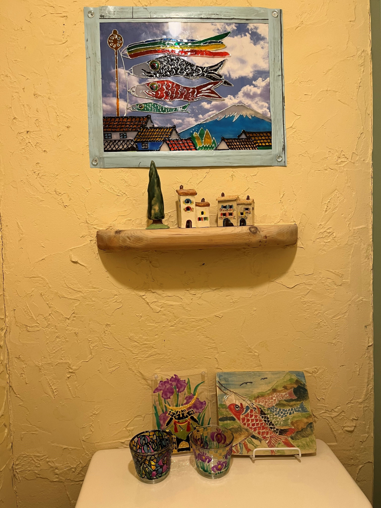 トイレタンクの上のこいのぼりの絵は、陶板で出来ています。